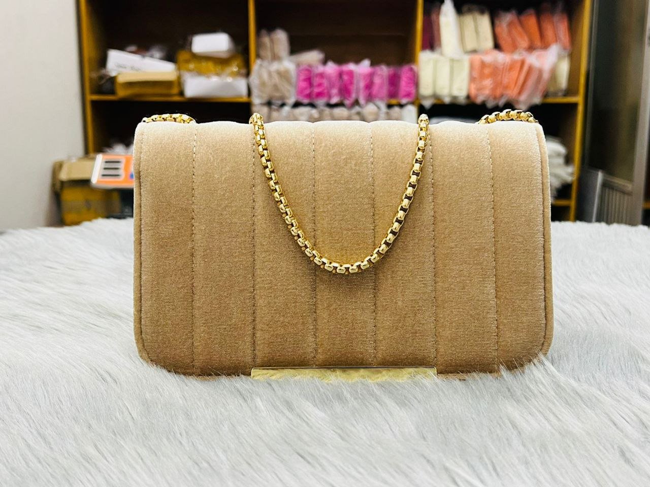 Velvet fabric bags for women, fashionable and versatile shoulder bags, stylish chain Bag Code.N137