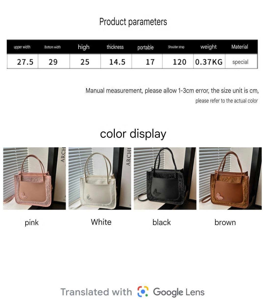 Size: Width 29, Height 25, Thickness 14.5 cm