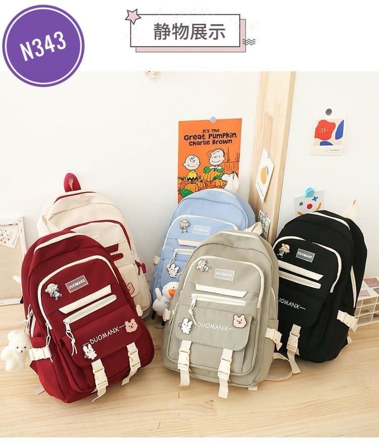 Korean style Large Capacity Nylon Backpack with Pandent & Doll N343