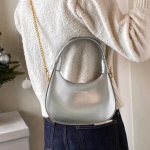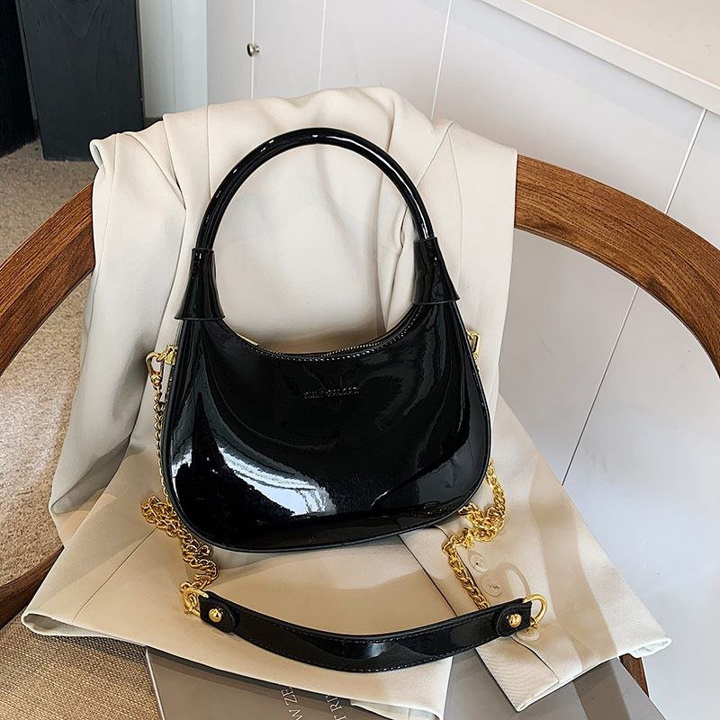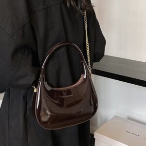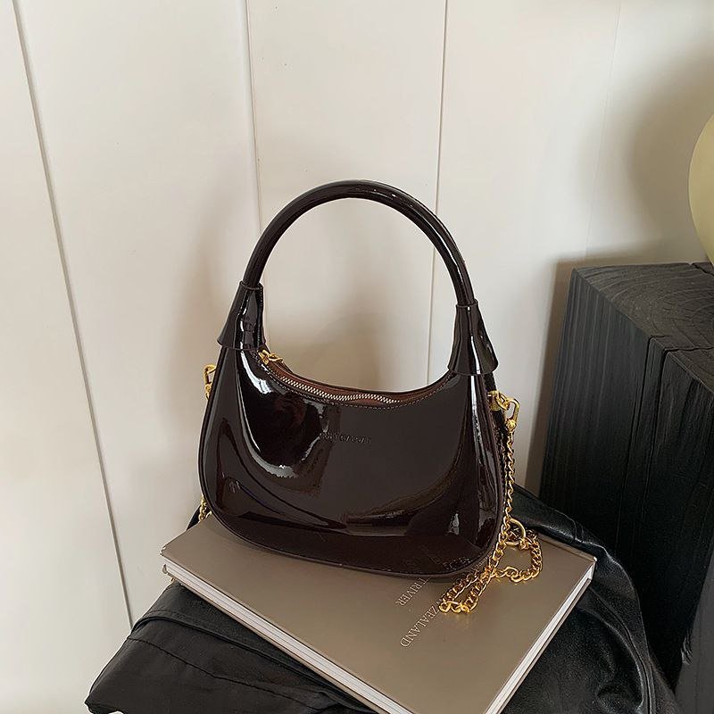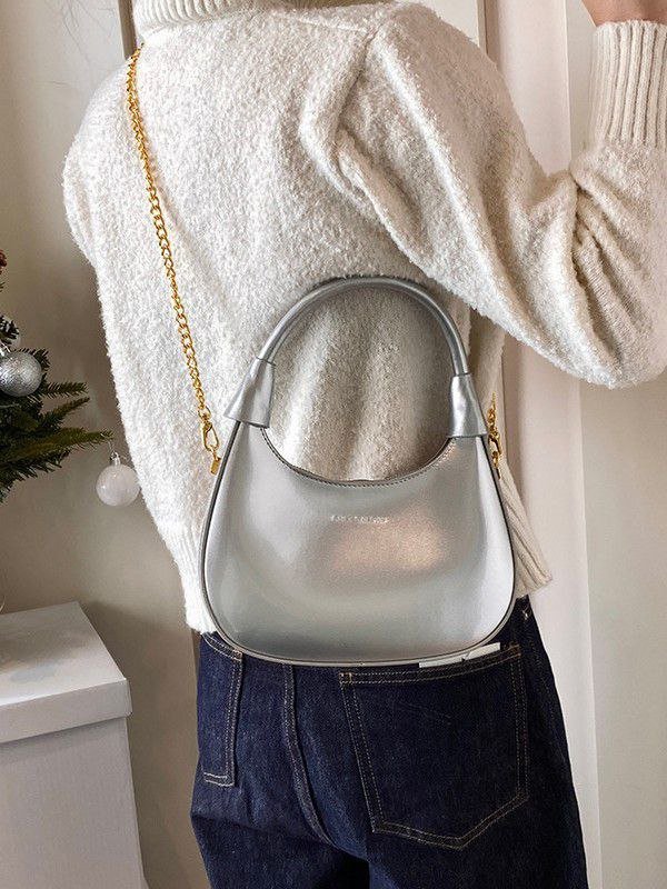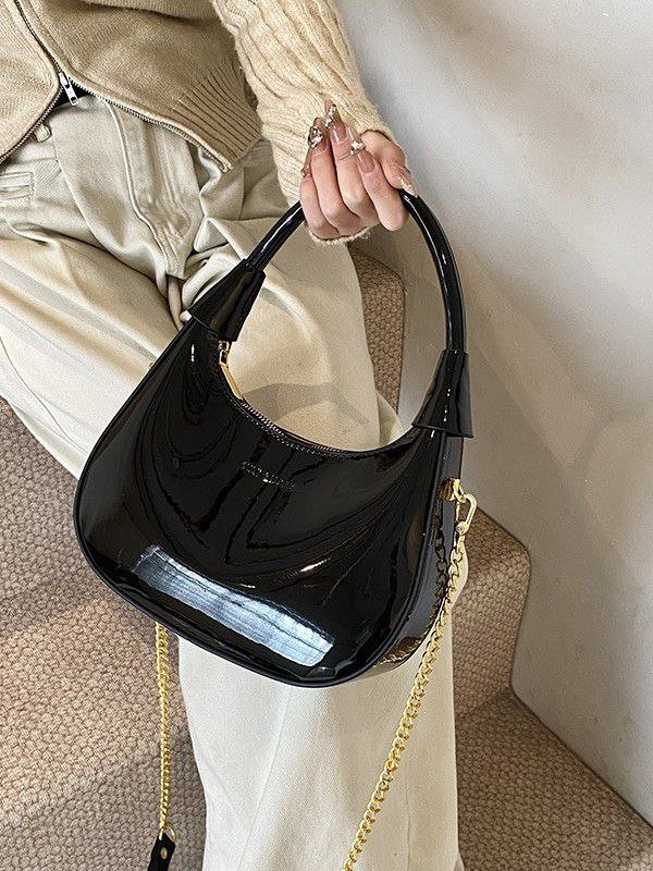 New Fashionable, Simple, Stylish Commuter Bag, Casual Crescent Bag, Glossy Chain Shoulder Bag/Underarm Bag N436